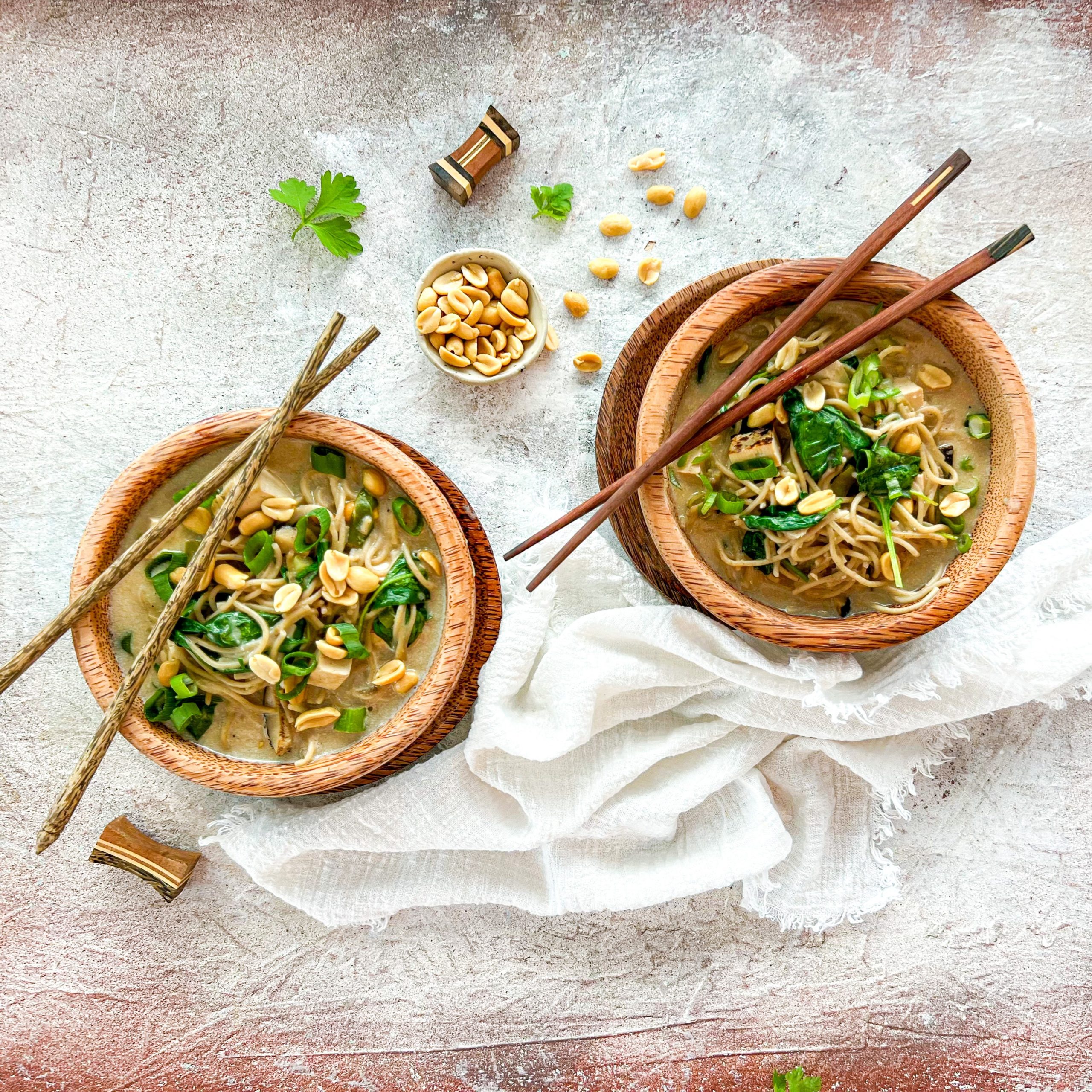 Tokrat smo ajdove jušne rezance uporabili nekoliko drugače. Namesto goveje juhice smo pripravili azijsko kremno juho. Dodali smo veliko zelenjave in tofu, zato bo ta recept kot nalašč za vse vegetarijance. Jed je odlična kot lahkotna glavna jed ali za večerjo.