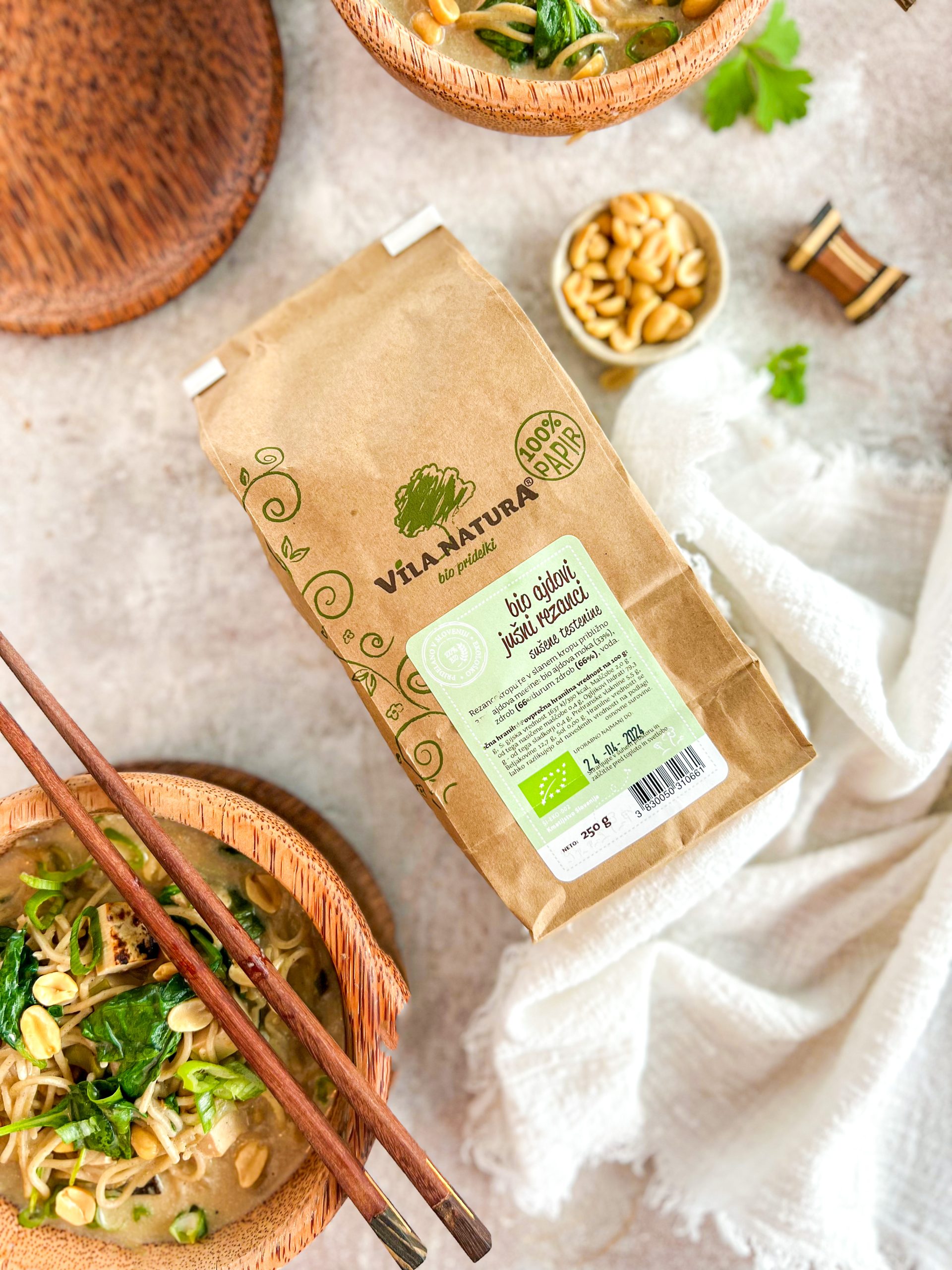 - 250g BIO ajdovih ozkih (jušnih) rezancev