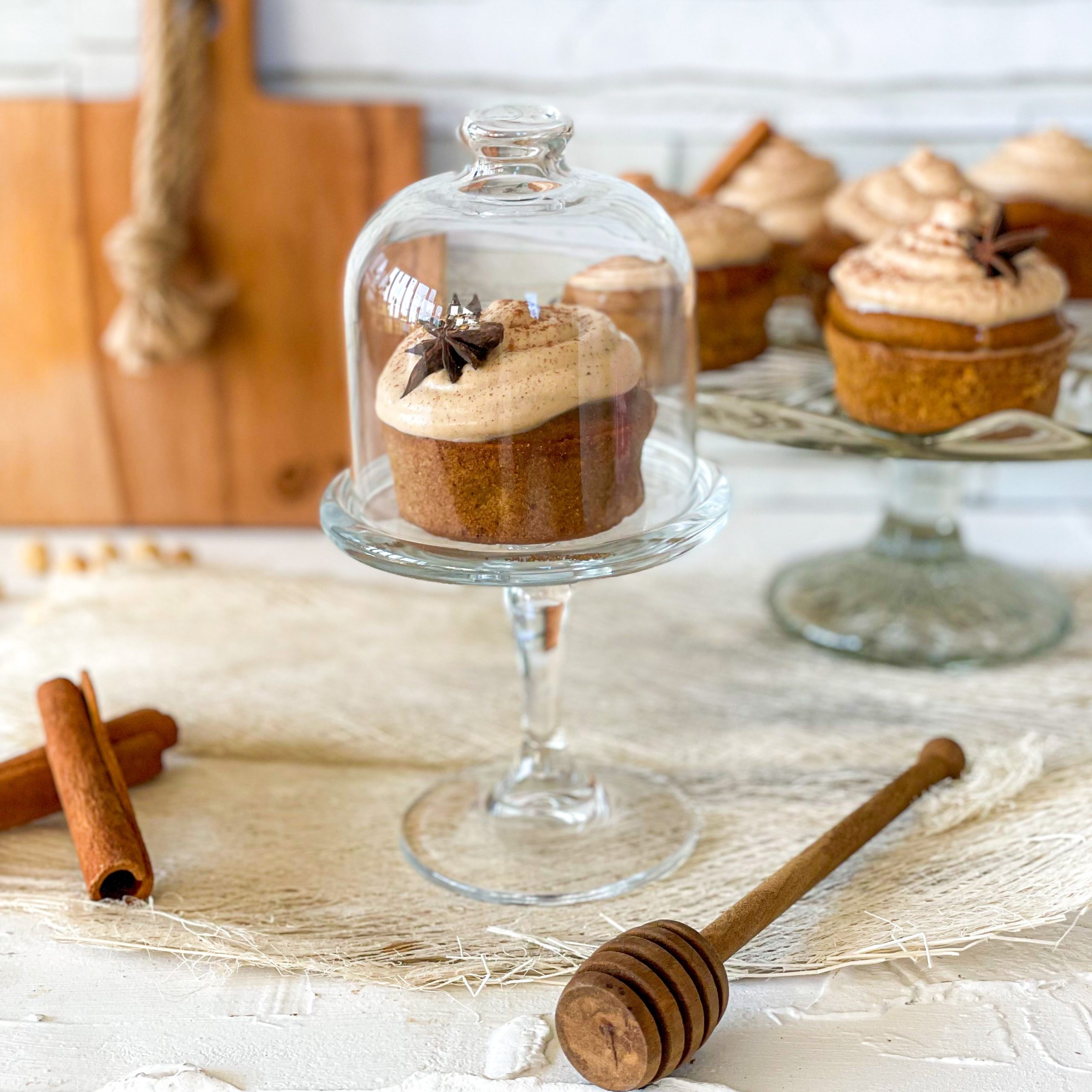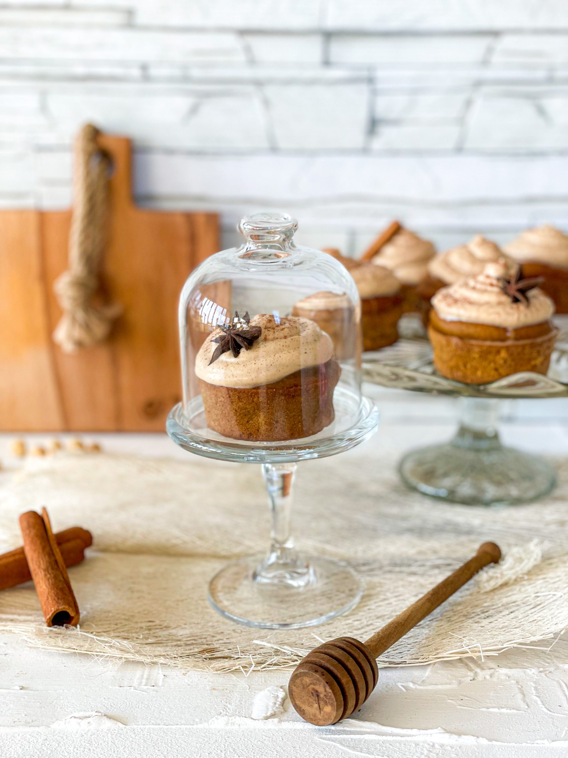7.Ko so kolački pečeni, jih popolnoma ohladite in šele nato okrasite s stepeno kokosovo smetano in posujte s cimetom.