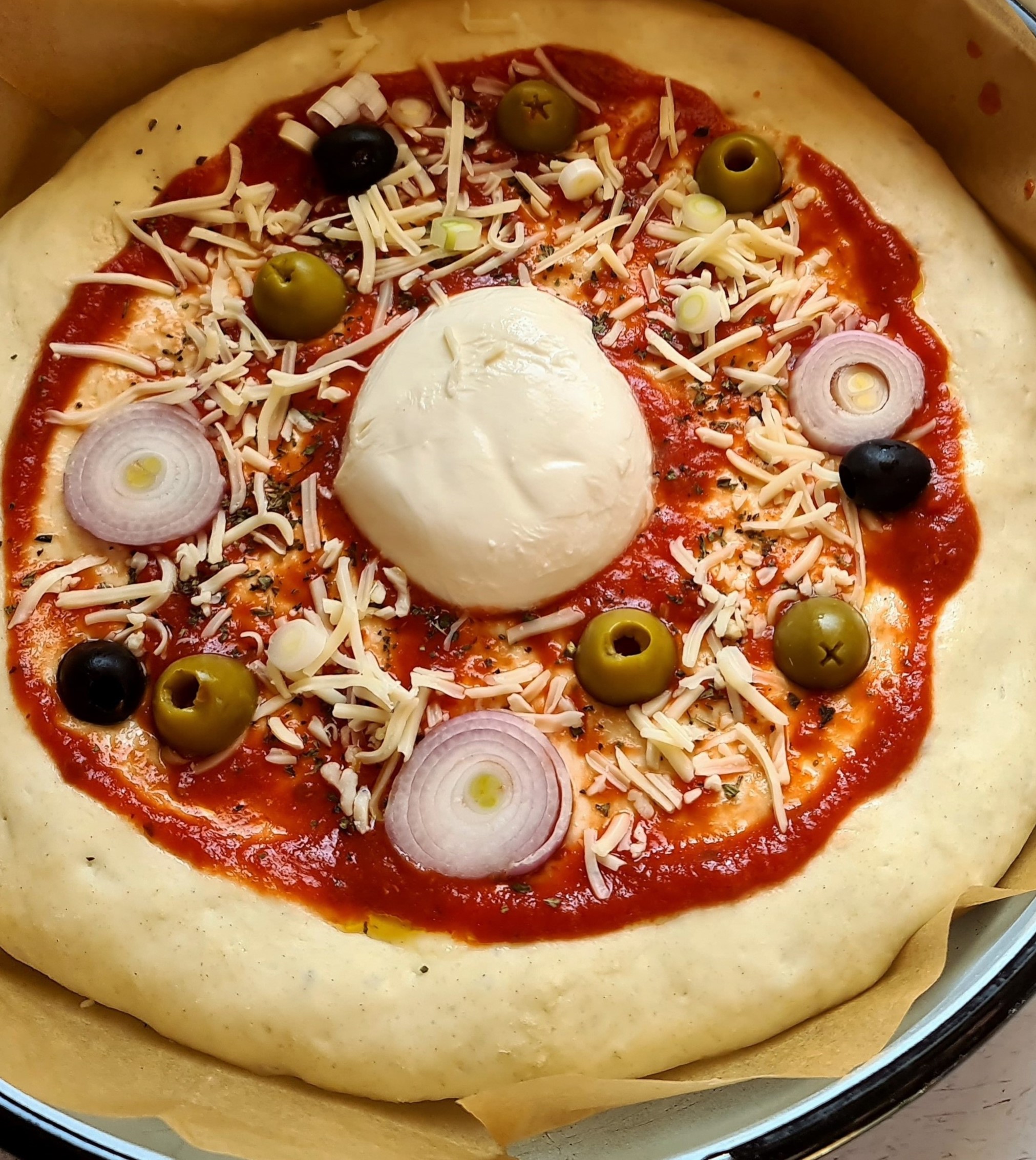 4. Ko je vaše testo vzhajano, se lotite priprave pizze.