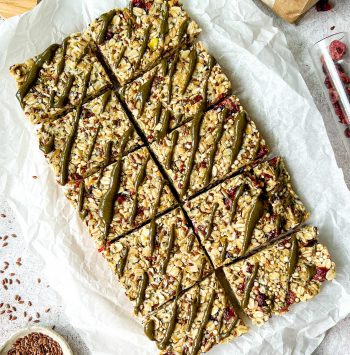 Naše recept za energijske ploščice vključuje poleg zdravih, vlaknin polnih, ovsenih kosmičev tudi energijsko bogata bio lanena semena.