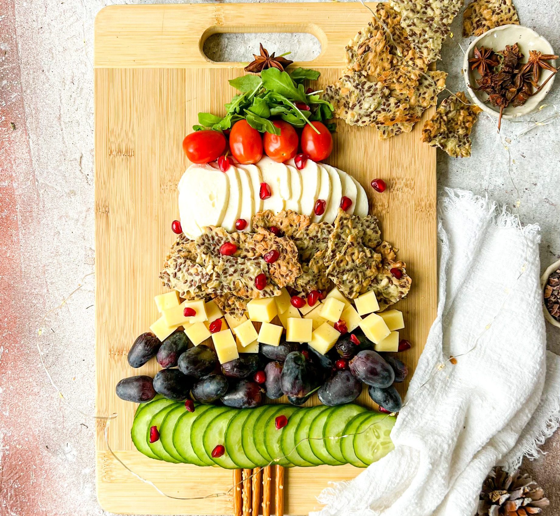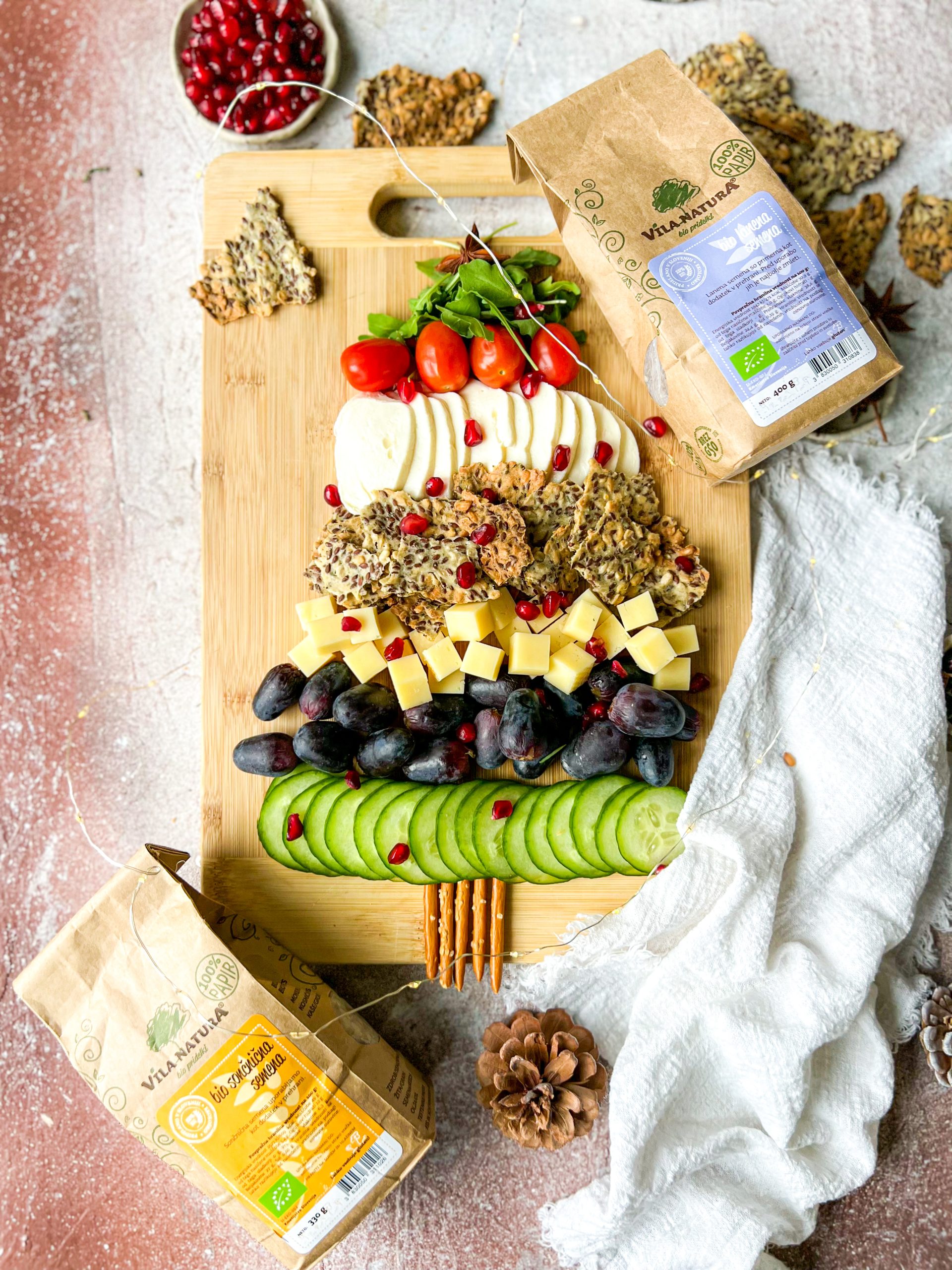 Silvestrovo je kot nalašč za preproste, zdrave jedi, kot je naš vizualno igriv silvestrski narezek, ki bo zagotovo pritegnil pozornost vaših gostov.  V središču naše ideje so domači krekerji – hrustljavi, aromatični in polnega okusa. V kombinaciji s sadjem, zelenjavo in sirom jih lahko preprosto razporedimo v obliko praznične smrečice, ki na mizo prinese svežino, barve in praznično razigranost. Kupljeni krekerji so pogosto bolj blagega okusa, domače pa začinimo po svojem okusu — hrustljavi, aromatični in polni semen so popolna osnova za prigrizke in namaze.
